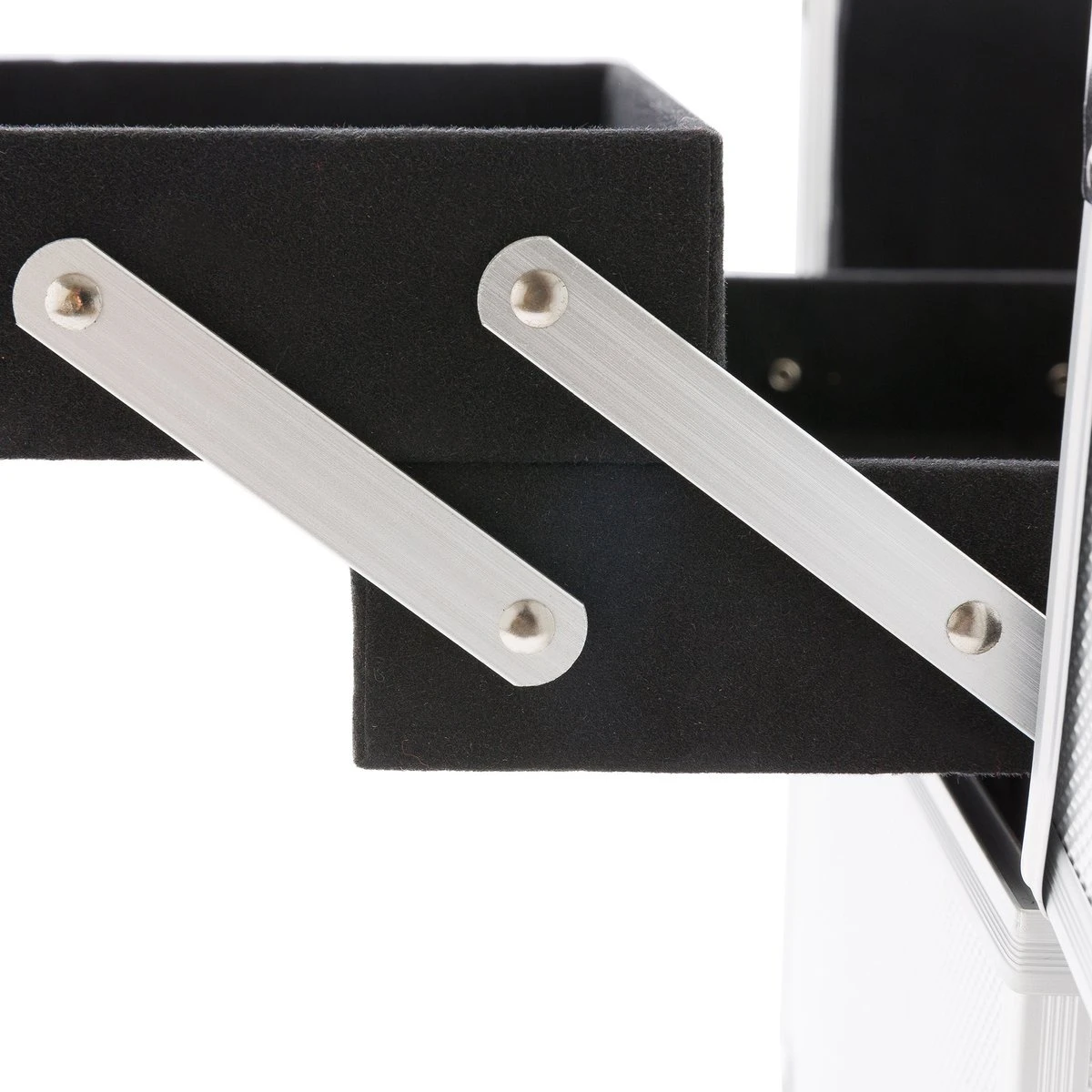 [ROBUUST ONTWERP] Robuuste en hoogwaardige beautykoffer gemaakt van veerkrachtig aluminium. De stabiliteit van de koffer zorgt voor een perfecte balans bij het vervoeren van spullen. | Voetjes op onderkant | Afgeronde hoeken beschermen de koffer tegen beschadiging door stoten.