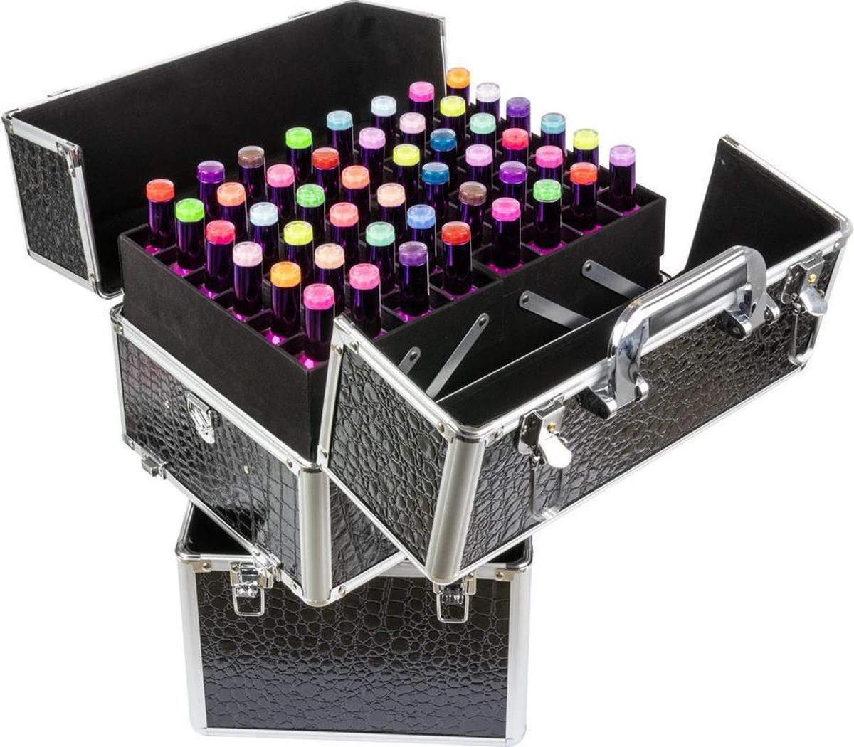 Grote ruime koffer met veel ruimte voor al uw nagel spullen. Met handige vakjes voor tot wel 48 potjes nagellak. Het nieuwste model, modern design,