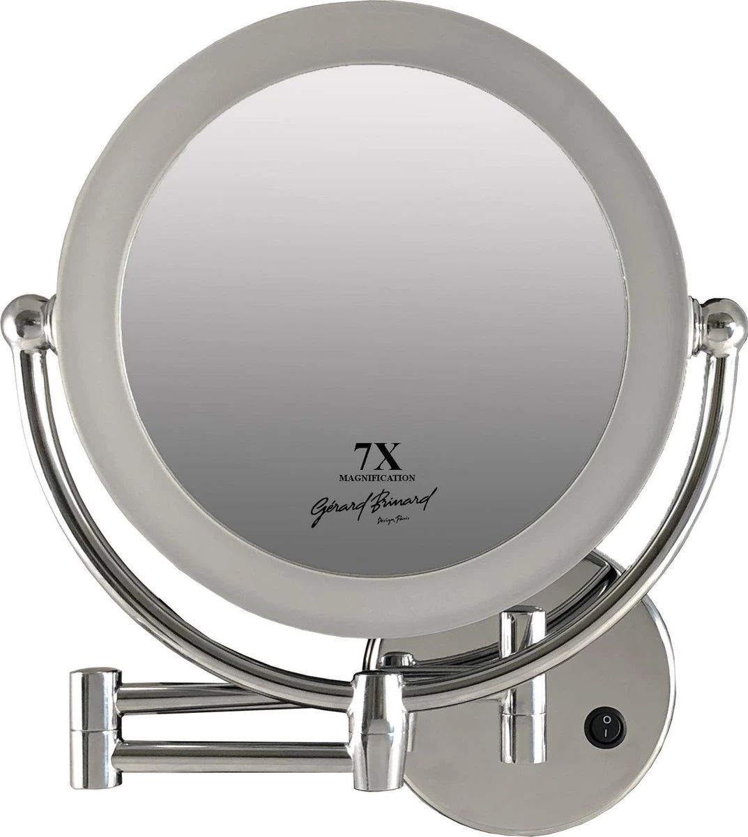 Metalen wand knik arm badkamer LED Spiegel chroom, dubbelzijdig verlicht, 7x vergroting, 22cm doorsnee
