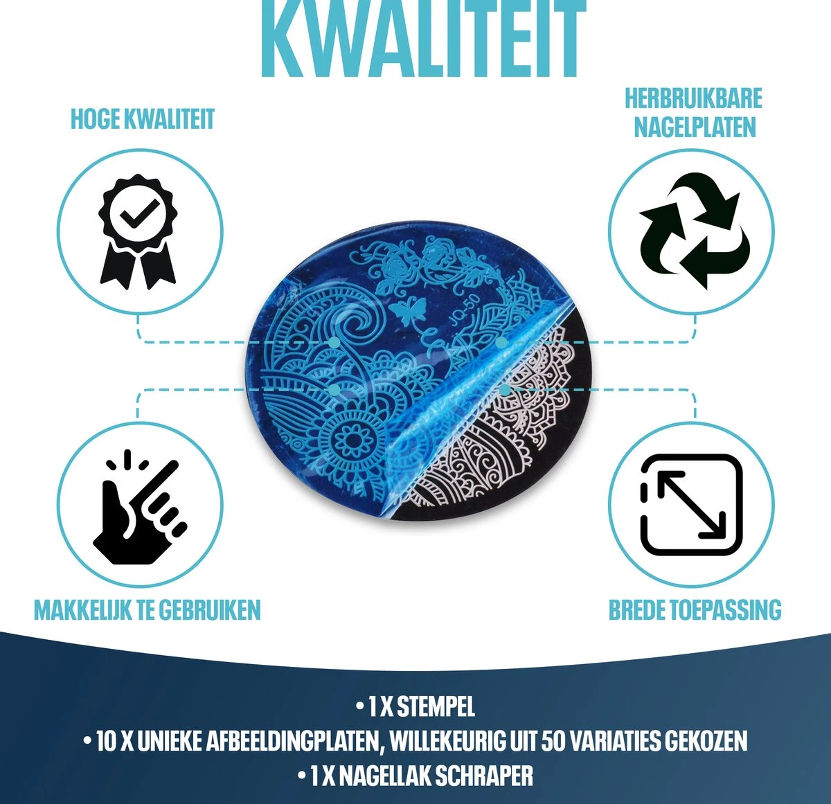 Met deze nagel stempel set creëert u de meest fantastische nagel kunstwerken.