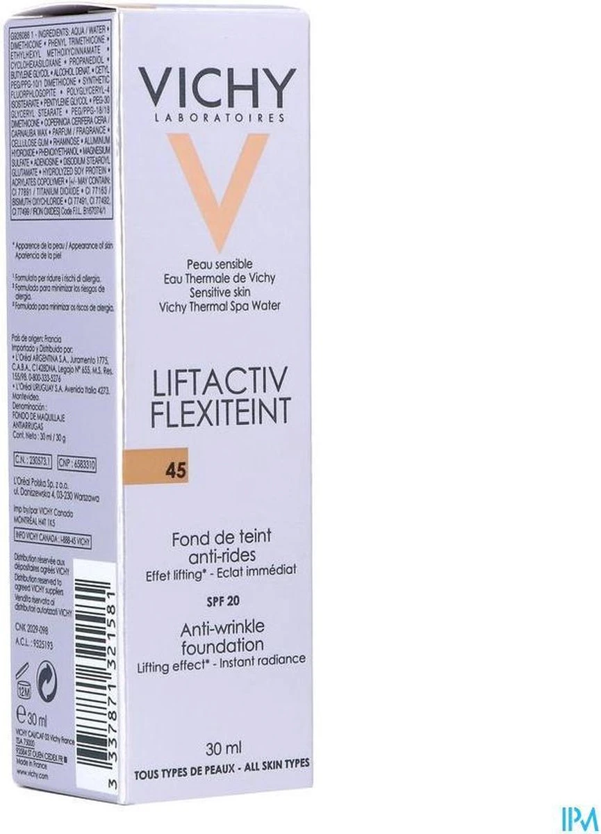 Liftactiv is Vichy’s krachtige anti-aging lijn, met doeltreffende formules tegen rimpels en verlies van stevigheid. Deze foundation met aanspannende siliconentextuur biedt anti-rimpel huidverzorging en camouflage in één, ideaal voor vrouwen vanaf 40 jaar.